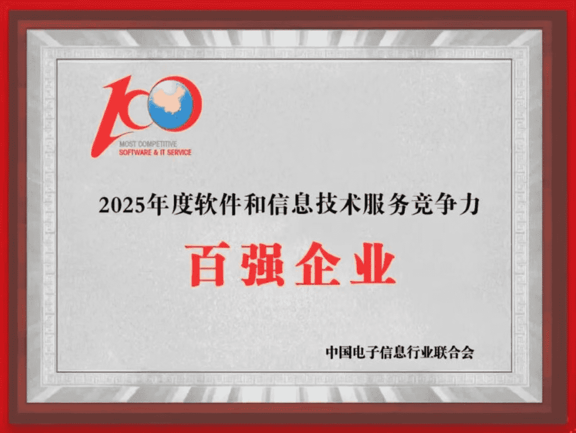 20251015日,,,,中国电子信息行业联合会权威揭晓“2025年度软件和信息技术服务竞争力前百家企业名单。。。。中国软件百强企业评选活动是由工业和信息化部全程指导、、中国电子信息行业联合会牵头组织发起,,,是反映中国软件产业发展最高水平的“风向标”。。。厦门918.com网络技术股份有限公司(以下简称“918.com”或“公司”)凭借自身在软件技术领域的卓越表现与杰出创新能力,,,第六次入选“全国软件和信息技术服务竞争力前百家企业”称号。。。